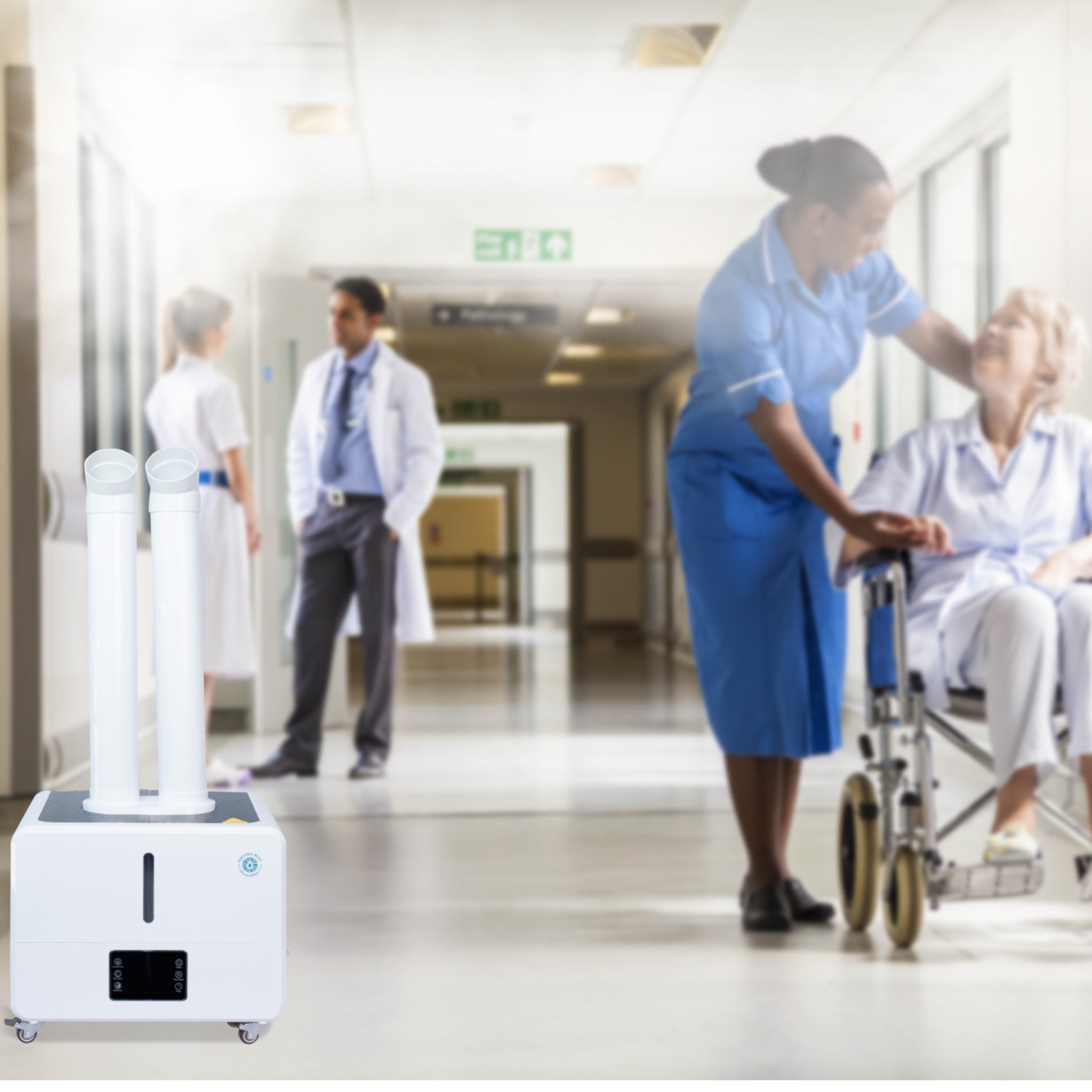 Al utilizar materiales de alta calidad y difusores o emisores superiores, todo nuestro equipo es compatible con nuestra solución de HOCl de baja concentración y pH neutro Natura Mist Spray®. Siempre siga el procedimiento adecuado de mantenimiento y limpieza del fabricante.