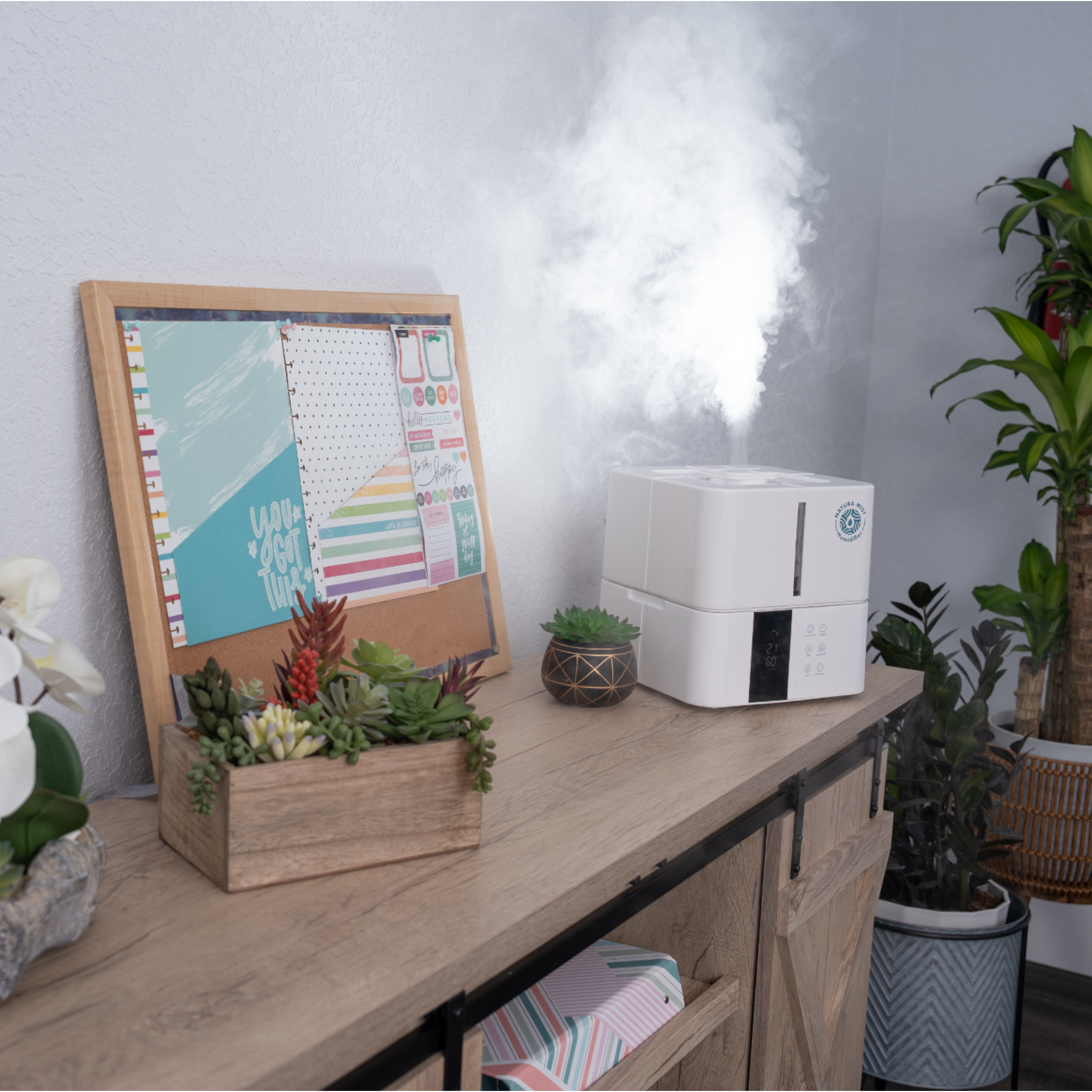 Los humidificadores Natura Mist están diseñados para ser inteligentes, programables e incluso listos para Wi-Fi, lo que te permite controlar los niveles de humedad desde tu smartphone o tableta fácilmente.