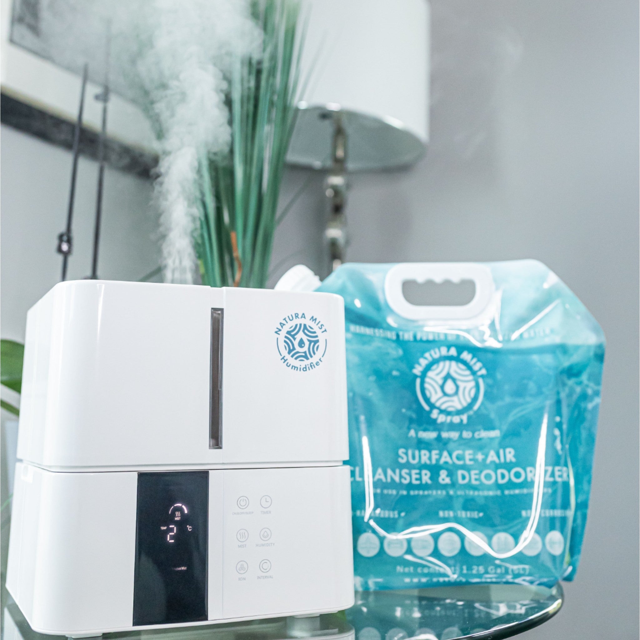 Mejore la calidad del aire en su lugar de trabajo con nuestro NHumidificador ultrasónico comercial Atura Mist. Cuando se combina con nuestra fórmula de HOCl NATURA MIST SPRAY® Limpiador y Desodorante de Superficies + Aire solución, este potente humidificador crea una fina niebla que elimina eficazmente químicos, partículas y olores en espacios comerciales concurridos. Experimente un ambiente de trabajo más saludable, ayude a reducir el ausentismo debido a alergias y enfermedades, y proporcione un espacio de trabajo más saludable para sus empleados y clientes.
